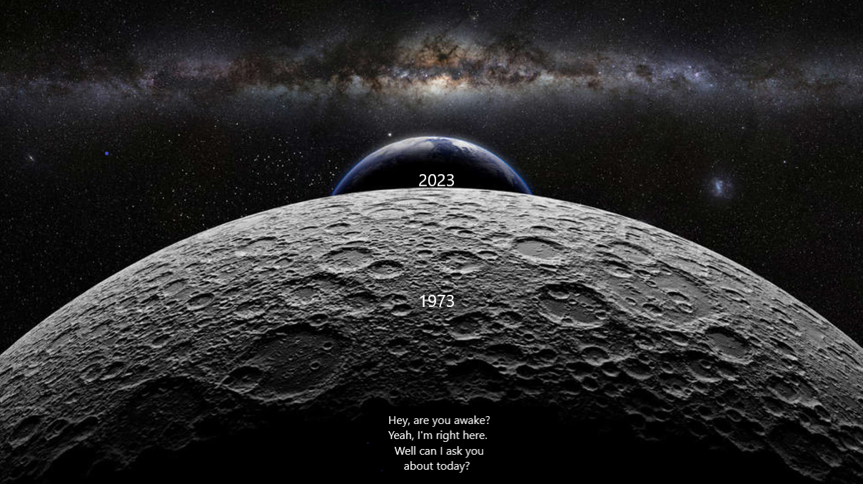 “Then there came a day, a man packed up flew off from the planet.