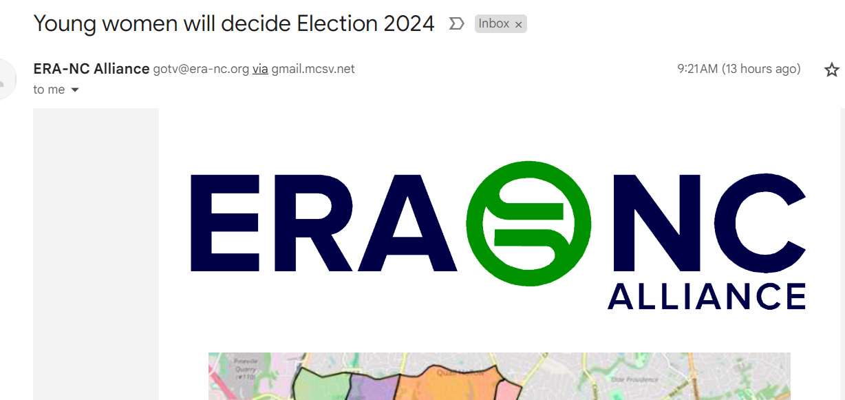 Please help us get these young women to head to the polls! Just send your name, contact info, Senate district and House district numbers to GOTV@ERA-NC.org. We’ve got ways for you to participate no matter your time constraints or abilities.